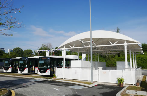 特徴 本格的な商用運行としては国内初のパンタグラフ充電方式が採用されました。トロリーバス同様の30分間隔運行を実現するため、10分間充電にてSOC90%以上の充電を可能にしました。